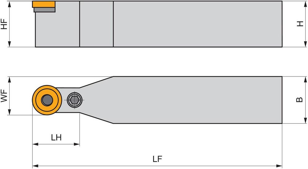 Dreh-Trägerwerkzeug mit Kniehebelklemmung zum spannen von Rund positive Wendeschneidplatten mit einem Durchmesser von 16mm · 6.35mm Dick (ISO Bezeichnung RCMX 1606MO ) · neutrale Ausführung zum Stirn-and Längsdrehen mit Zylinderschaft · 32mm Werkzeughöhe x 25mm Breite x 170mm Länge für Kegeldrehen · Kopierdrehen in einer und mehreren Richtungen und Längsdrehen ohne Schulter