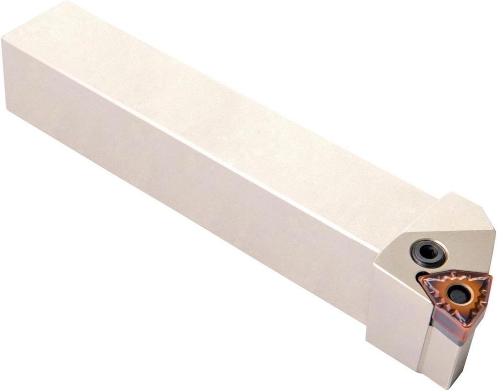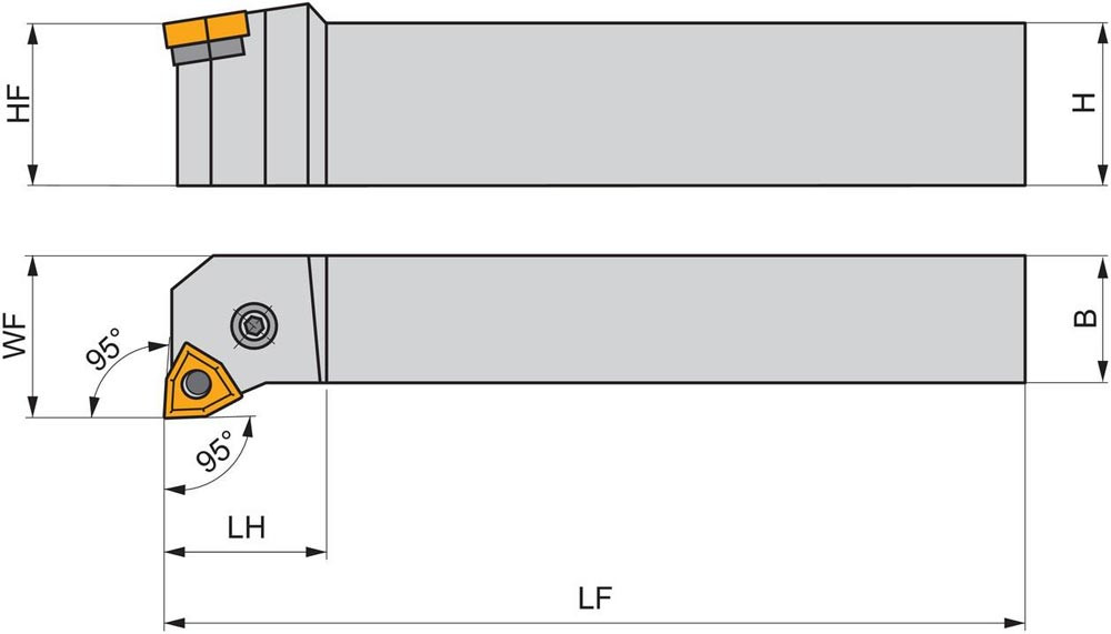 Dreh-Trägerwerkzeug mit Kniehebelklemmung zum spannen von 80° Trigonal negative Wendeschneidplatten mit einem Innenkreisdurchmesser von 9.525mm · 4.76mm Dick (ISO Bezeichnung WN.. 0604.. ) · linke Ausführung zum 95° Stirn-und Längsdrehen mit abgesetzem Schaft · 20mm Werkzeughöhe x 20mm Breite x 125mm Länge für Kegeldrehen · Stirndrehen mit und ohne Schulter und Längsdrehen mit und ohne Schulter