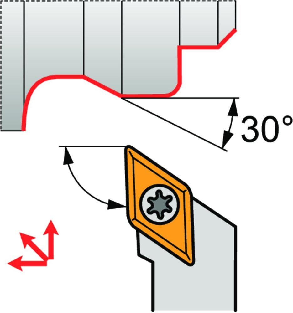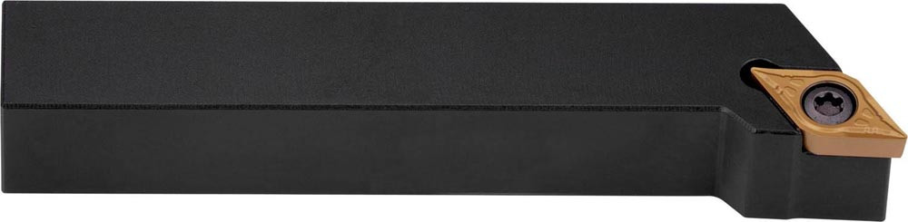 Dreh-Trägerwerkzeug mit Schraubklemmung zum spannen von 55° Rhombus positive Wendeschneidplatten mit einem Innenkreisdurchmesser von 9.525mm · 3.97mm Dick (ISO Bezeichnung DC.. 11T3.. ) · linke Ausführung zum 93° Stirndrehen mit abgesetzem Schaft · 12mm Werkzeughöhe x 12mm Breite x 80mm Länge für entgraten · Kegeldrehen · Kopierdrehen in einer und mehreren Richtungen und Längsdrehen mit und ohne Schulter