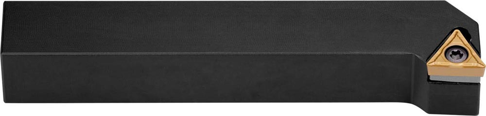Dreh-Trägerwerkzeug mit Schraubklemmung zum spannen von Triangular positive Wendeschneidplatten mit einem Innenkreisdurchmesser von 9.525mm · 3.97mm Dick (ISO Bezeichnung TC.. 16T3.. ) · linke Ausführung zum 93° Stirndrehen mit abgesetzem Schaft · 25mm Werkzeughöhe x 25mm Breite x 150mm Länge für Kegeldrehen und Längsdrehen mit und ohne Schulter