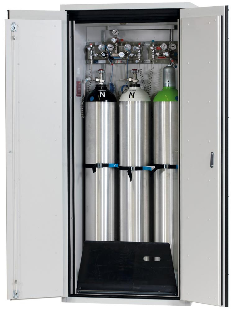 Druckgasflaschenschrank, 90 Min. feuerwiderstandsfähig, für 3x50-l-Flaschen, BxTxH 900x615x2050 mm, RAL 7035