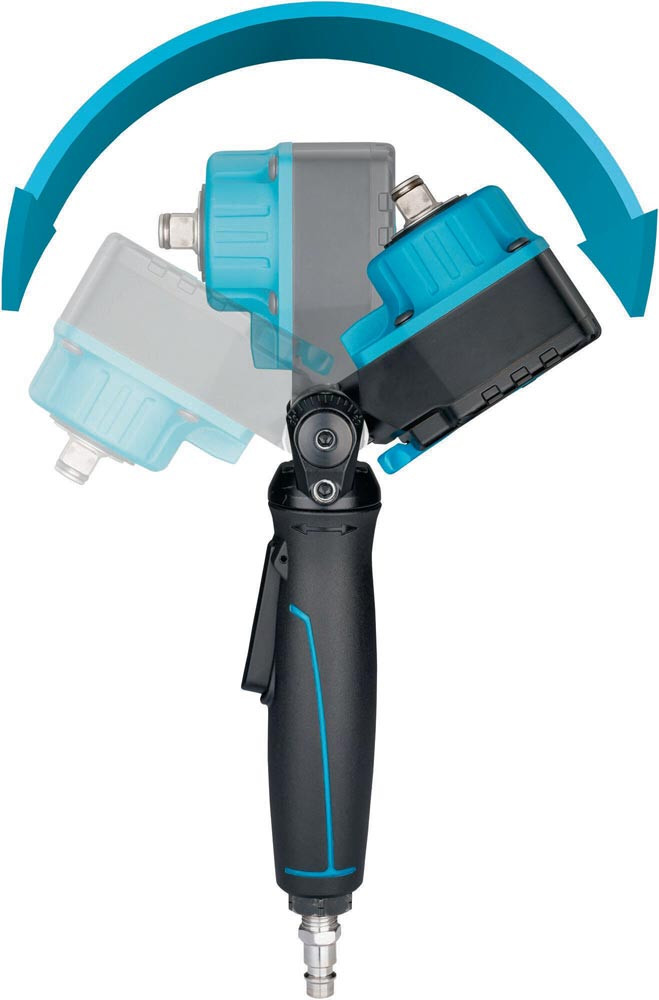 Twin Turbo Technologie: hohe Drehmomente bei kompakter Bauweise · betätigen von Bremssattelverschraubungen sowie anderer schwer erreichbarer Schraubfälle · kälteisolierender Griff · um die eigene Achse verstellbarer Griff / Trigger zur optimalen Handhabung ermöglicht Betätigung in jeder Position · Rechts-/Linkslauf: einstufig (rechts/links) · empfohlenes Drehmoment 450 Nm
