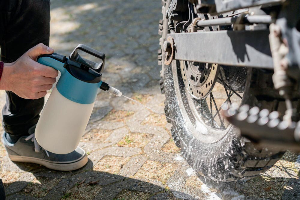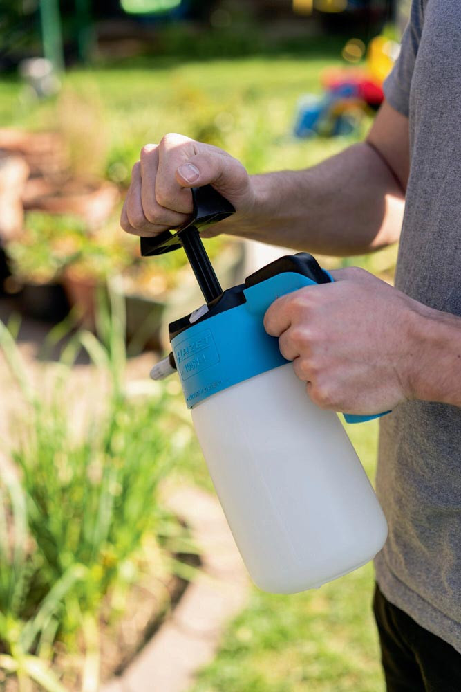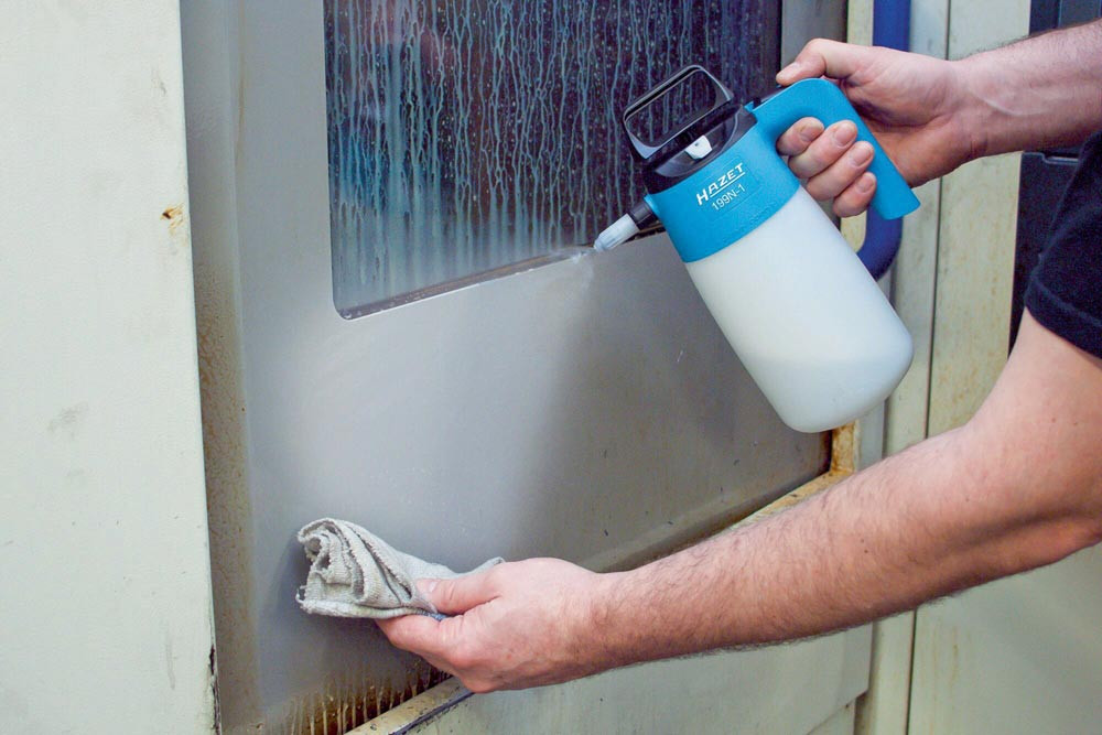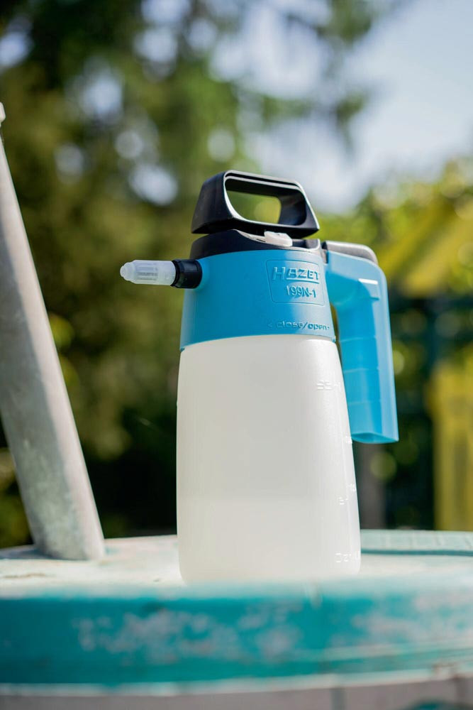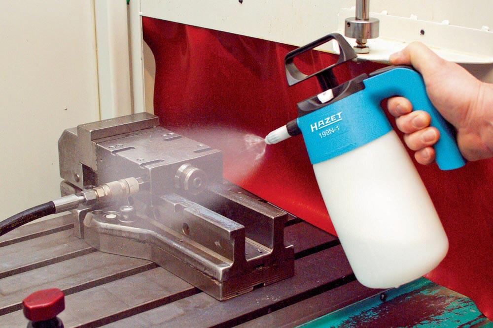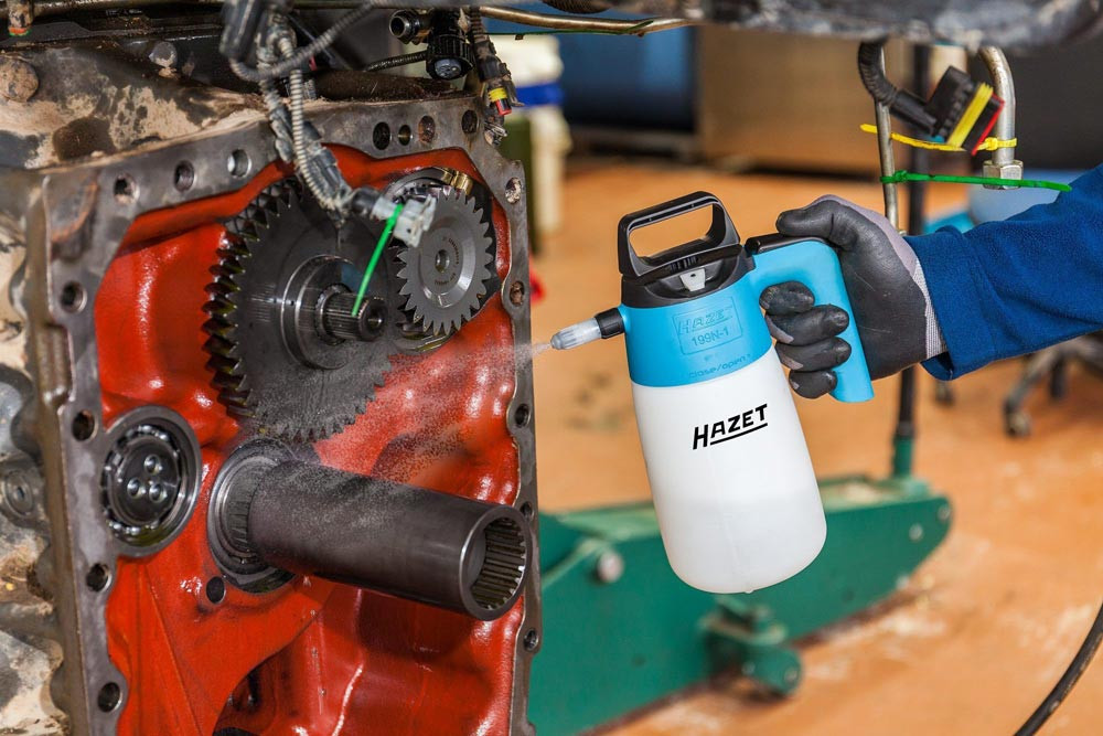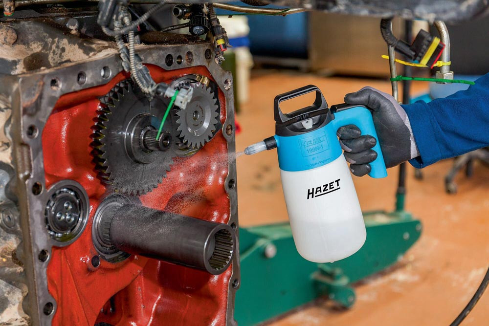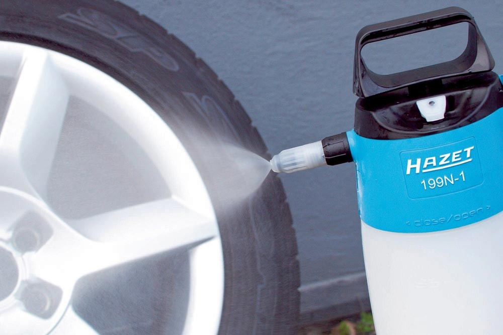 gekapselter Pumpmechanismus · integriertes Sicherheitsventil ermöglicht den Behälter vor Öffnen drucklos zu schalten · Viton-Dichtungen und Materialien beständig gegen die meisten Säuren und Lösungsmittel sowie gegen die in Industrie, Kfz-Technik und professioneller Reinigung am häufigsten eingesetzten Chemikalien · verstellbare Kegeldüse