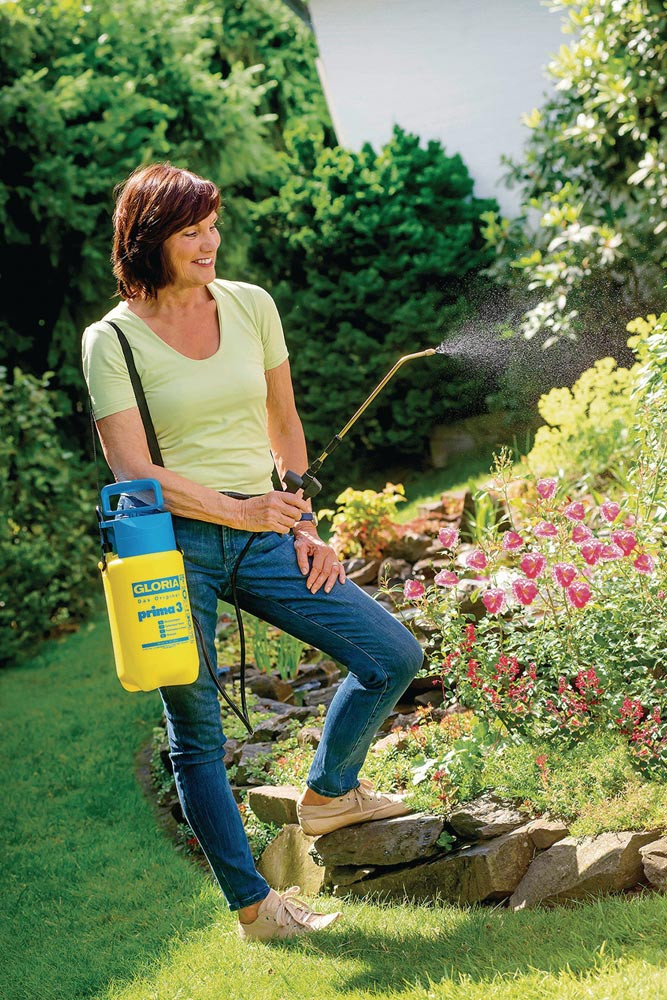 für die Pflanzenpflege in kleinen und mittleren Gärten · max. Betriebsdruck 3 bar · stabiler Kunststoffbehälter · Messing-Sprühlanze · verstellbare Messing-Hohlkegeldüse · leistungsstarke Druckpumpe · großer Einfülltrichter für komfortables Befüllen · Entlüftungsventil mit integriertem Sicherheitsventil · transparenter Sichtstreifen zur Füllstandskontrolle · Tragriemen, schultertragbar