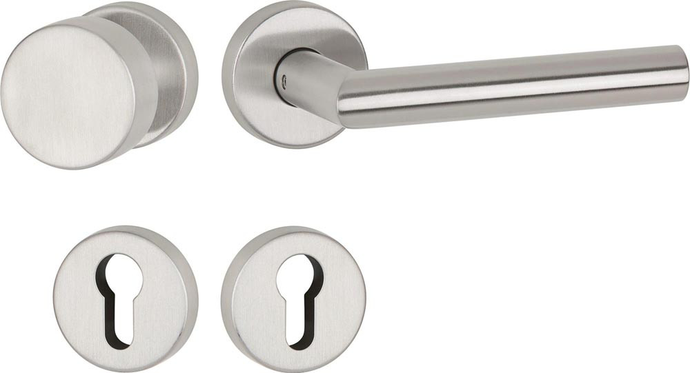 Drückergarnitur Basic 02 Edelstahl 60 Edelstahl matt Gehrung PZ DIN links / rechts D/D 30 E6499657