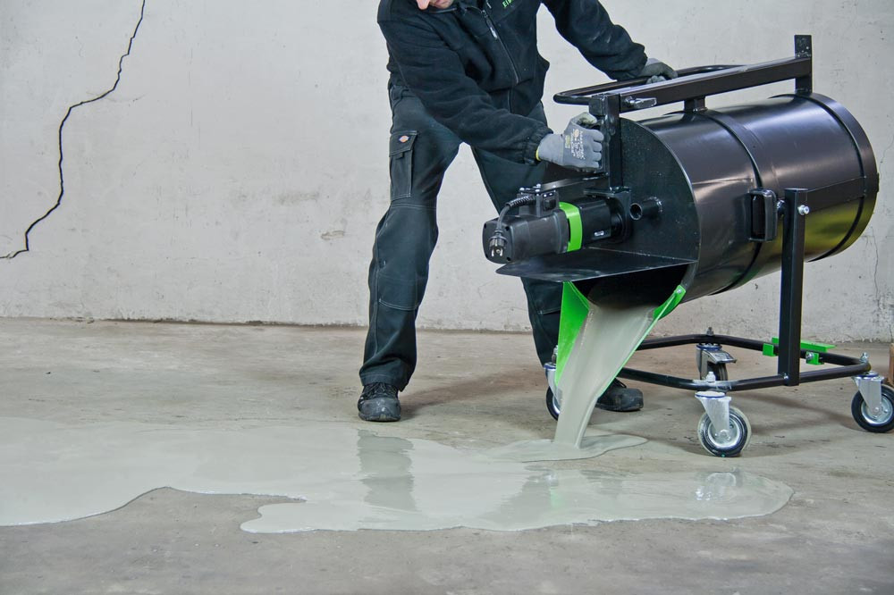 Ausführung: Mischstation für homogenes und klumpenfreies Mischen von Fließestrich, Nivellierspachtel, faserverstärkten Spachtelmassen, farbigen Beschichtungen und Flüssigkunststoffen ∙ Vier Drehzahlstufen durch 2-Gang Getriebe und elektr. Drehzahlumschalter ∙ Elektronik – Sanftanlauf ∙ Drehzahlkonstanthaltung ∙ Temperatur- und Überlastabschaltung ∙ Schalter mit Staubschutz und Wiederanlaufschutz ∙ Transportgestell mit Handgriffen und großen Rädern ∙ Anschluss für Staubabsaugung Ø 35 mm ∙ Ausgießvorrichtung ∙ Optimal geeignet für dünnflüssige Bodenausgleichsmassen