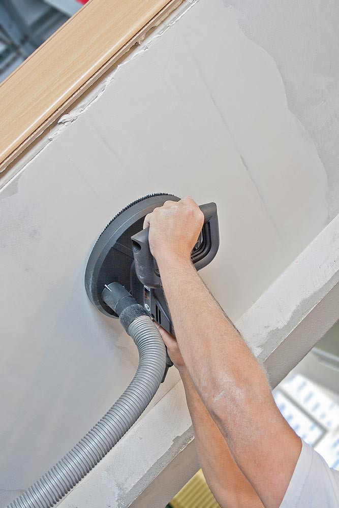 Ausführung: Laufruhige, leichte Bauweise mit Absaugung und Anschluss für Industriestaubsauger zum Schleifen von Gips, Spachtelmassen, Farbe, Bearbeiten von Holz -und Metalloberflächen ∙ Mit Elektronik-Schalter für stufenlose Drehzahländerung ∙ Abnehmbares Bürstensegment für randnahes Arbeiten ∙ Großer Kletthaftteller Ø 225 mm für schnelle Bearbeitung großer Flächen
