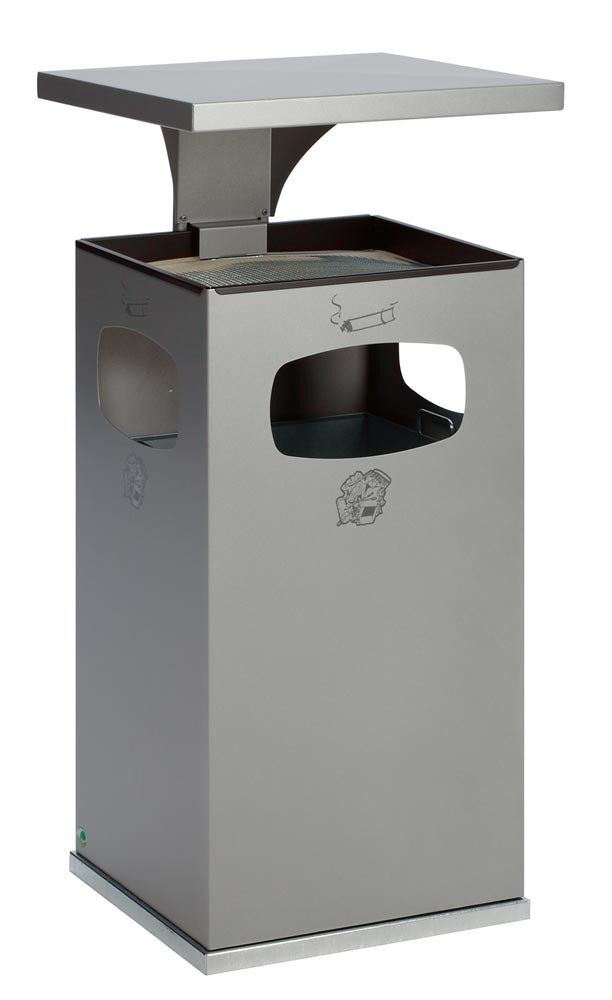 Eckiger Kombi-Ascher, verz. Sieb, Dach, verz. Inneneimer 38 l, RAL 7021, BxTxH 395x395x910 mm EP517703