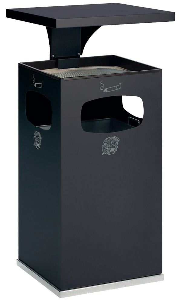 Eckiger Kombi-Ascher, verz. Sieb, Dach, verz. Inneneimer 38 l, RAL 7021, BxTxH 395x395x910 mm EP517703