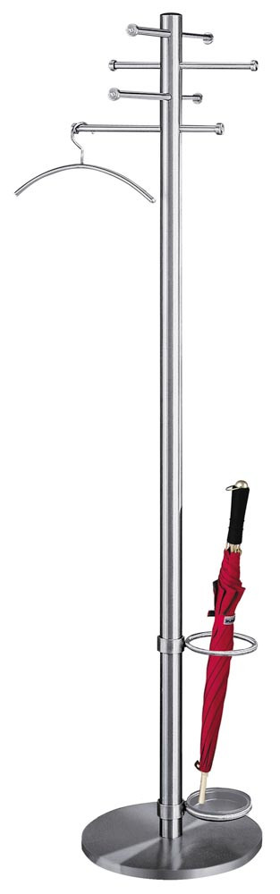 Edelstahl-Garderobenständer, Durchm.xH 410x1800 mm, 4 verschiebbare Arme, 8 Hut-/Mantelhaken