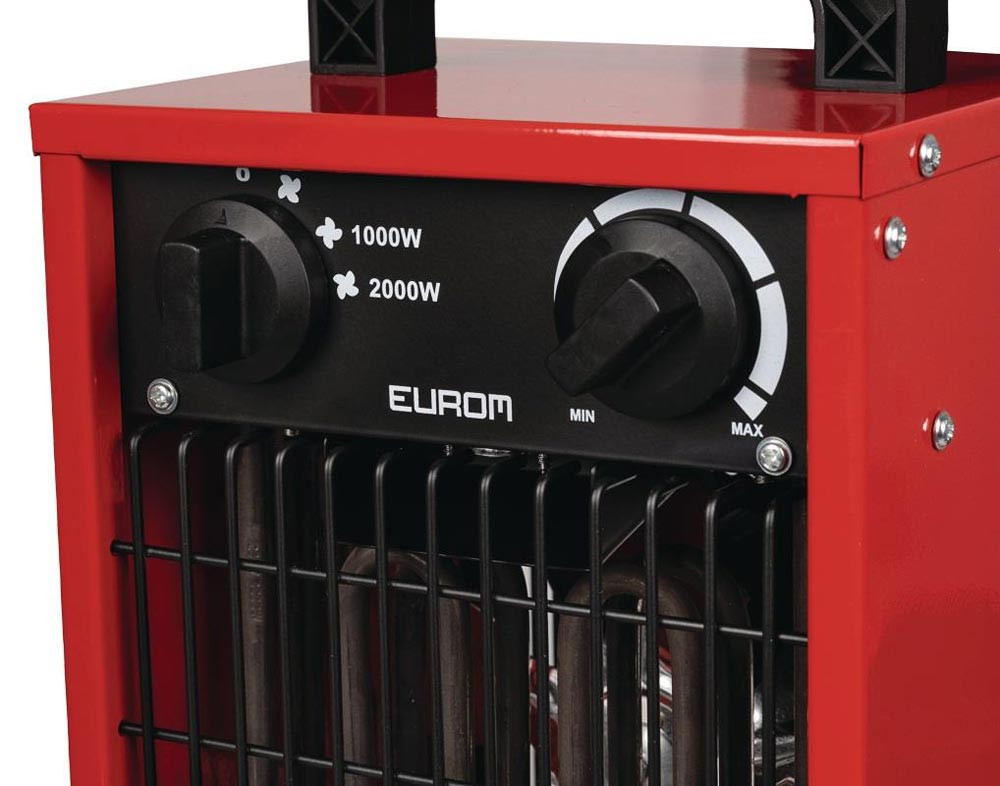 elektrische Werkstattheizung · 2000 W · große Luftverdrängung · mit Überhitzungsschutz und Thermostat · 2 Leistungsoptionen · robustes Metallgehäuse