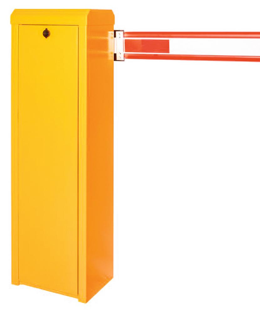 · Sperrbalkenlänge von 2,00 bis 6,00 m · Zum Aufdübeln · 230 Volt Anschluss · Gehäuse aus Stahl, beschichtet in RAL 1028 (melonengelb) · Schrankenbaum aus Aluminium (60 x 40 mm), ab 5,50 m 100 x 40 mm · Höhenverstellbare und gefederte Pendelstütze · Notentriegelung, Soft - Stopp, Automatik- oder Totmannbetrieb, zeitgesteuertes Schließen · Lieferung inkl. 1 Handsender