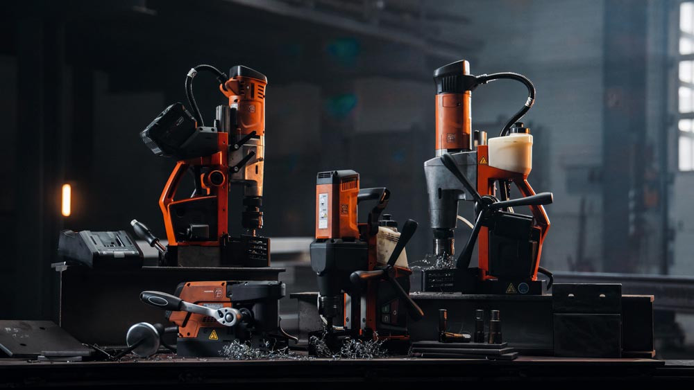 Leichtgewichtige, hubstarke und clevere 2-Gang Automatic-Magnet-Kernbohrmaschine für höchste Effizienz und geringste körperliche Belastung ∙ Zeit- und Kostenersparnis bei großen Bohrvolumen durch digital angesteuerten Bohrvorschub ∙ Durch Rechts-/Linkslauf, elektronische Drehzahleinstellung und 315 mm Hubbereich ist ein universeller Arbeitseinsatz, wie Kern-, Spiral-, Gewindebohren sowie Senken und Reiben möglich ∙ Mit schwenkbar gelagertem Motorkabel-Schutzschlauch ∙ MK3-Werkzeugaufnahme ∙ Integrierter Kühlmitteltank sorgt für hohe Kernbohrerstandzeiten ∙ Drehzahlspeicher "Memory Function" ∙ Planbare Arbeitszeiten bei Auftragsarbeiten und seriellen Arbeiten durch reproduzierbare und getaktete Bohrzeiten
