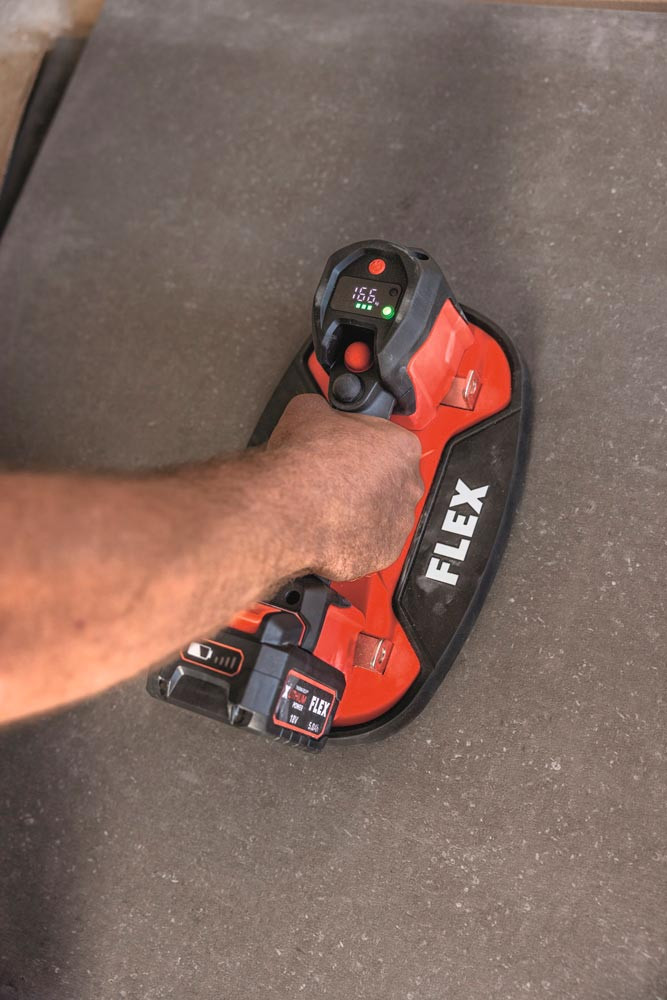 Mit dem mobilen, elektrischen 18 V Akku-Vakuum-Saugheber lässt sich nahezu jeder Gegenstand heben, bewegen und präzise platzieren ∙ Geeignet für praktisch jede Oberfläche wie Fliesen, Trockenbauplatten, Betonsteine, Glas, Metalle, Möbel und große Elektrogeräte etc. ∙ Hohe Haltekraft bis 170 kg ∙ Saugt sich auf fast alle Oberflächen sowie rauen, staubigen oder halbporösen Materialien an ∙ Mit automatischer Nachsaugfunktion und digitalem Display zur kontinuierlichen Überwachung des aktuellen Unterdrucks ∙ Mit LED Akku-Anzeige