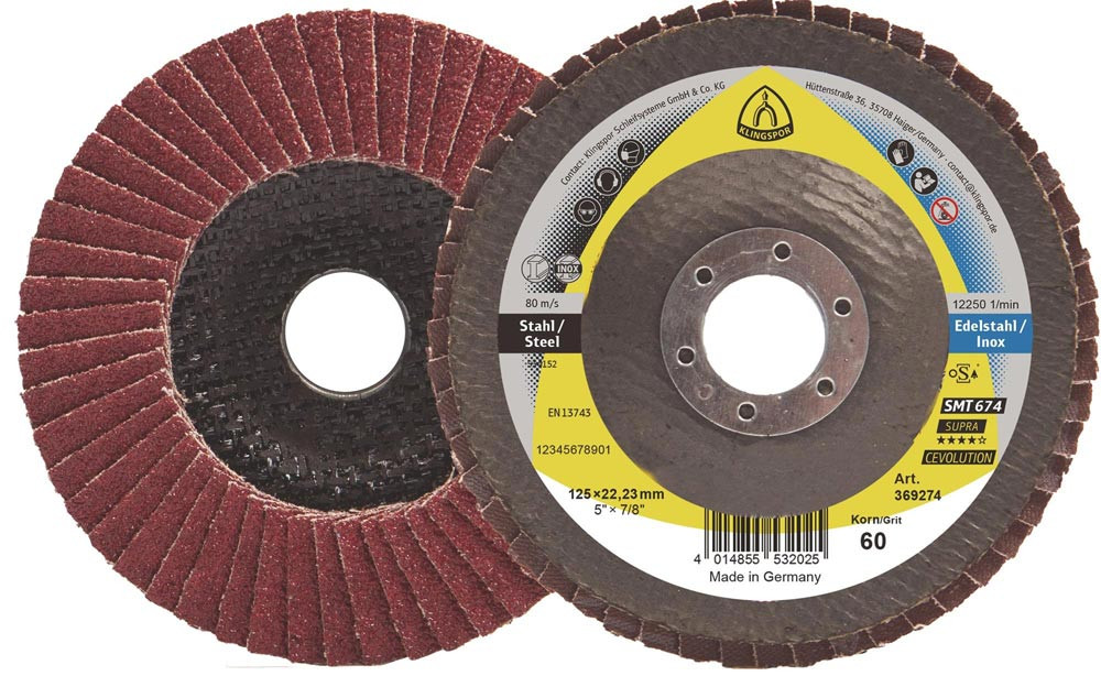 Fächerscheibe SMT 674 Ø 125 mm Körnung 60 mm gewölbt Stahl keramischer Korund E6513575