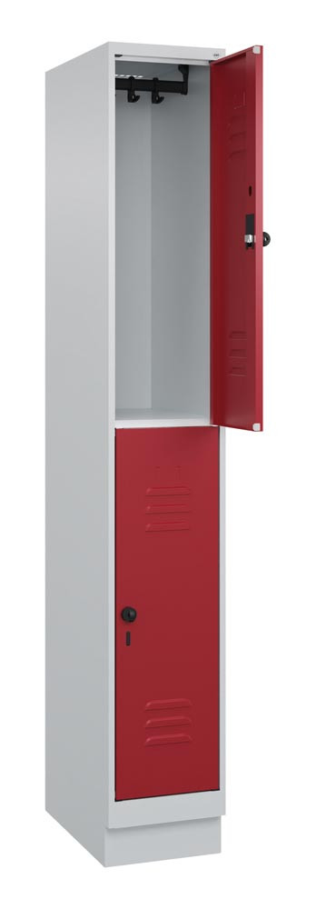 Fächerschrank, doppelstöckig, BxTxH 300x500x1950 mm, 1x2 Fächer, Abt.B 300 mm, Drehriegel, Sockel, Farbwahl