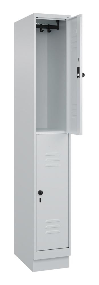Fächerschrank, doppelstöckig, BxTxH 300x500x1950 mm, 1x2 Fächer, Abt.B 300 mm, Drehriegel, Sockel, Farbwahl EP559816