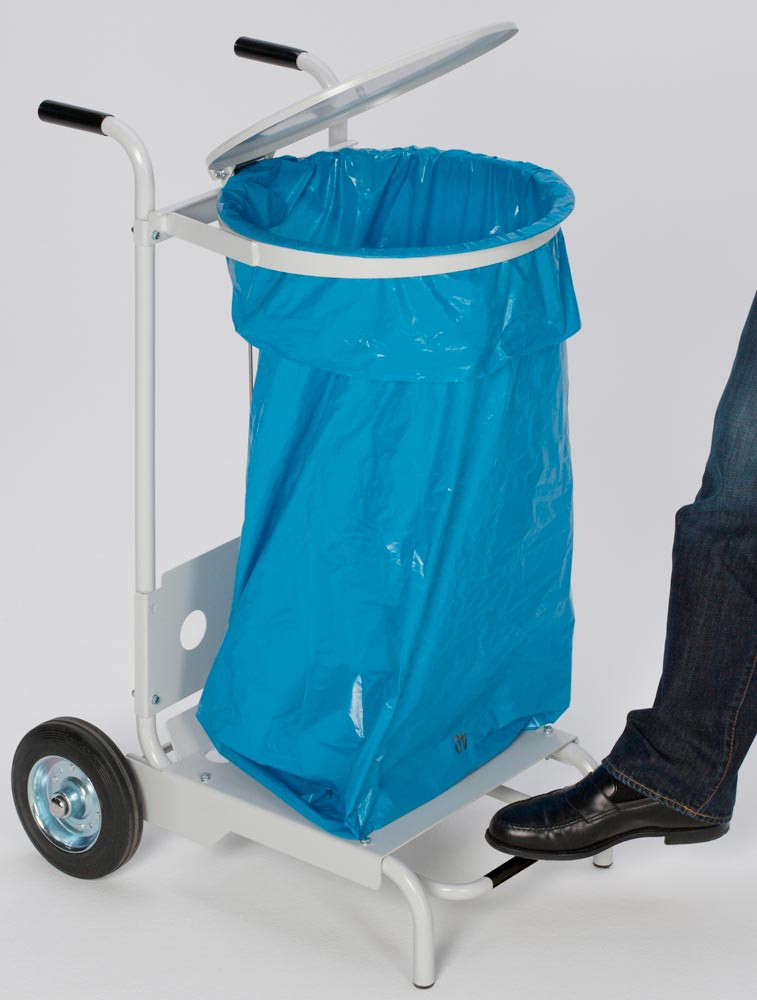 Fahrbarer Müllsackständer, beschichtet RAL 7035 lichtgrau, für 120-l-Säcke, mit Fusspedal, Durchm.xH: 410x900 mm