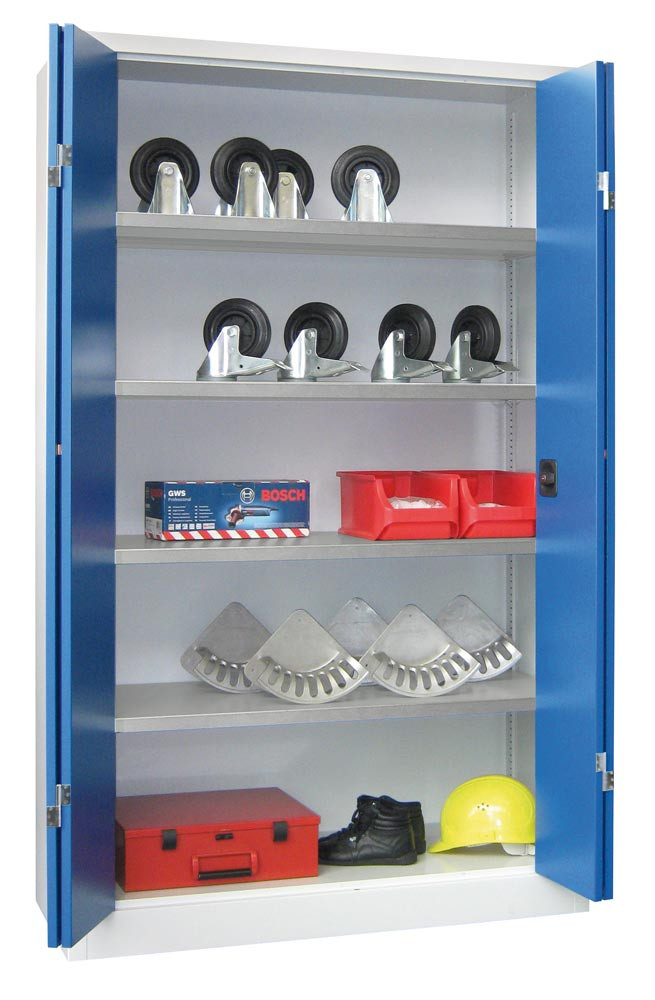 Falttürenschrank, Vollblechtüren, 4 verzinkte Böden, BxTxH 1200x400x1950 mm, RAL 5010 EP528641