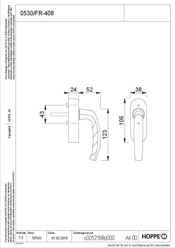 HOPPE-eFenstergriff SecuSignal® Aluminium-Dreh-/Kipp-Funk-Fenstergriff mit Secustik® und VarioFit®: