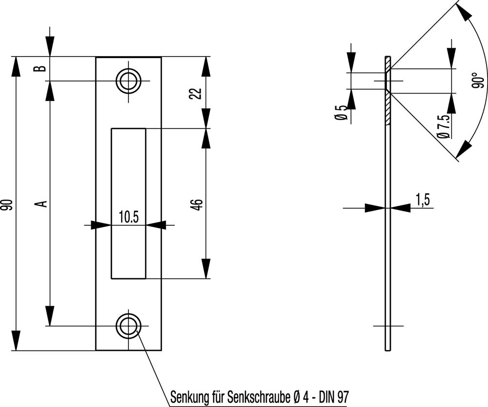 Flachschließblech S412 Edelstahl käntig Stulpbreite 24 mm