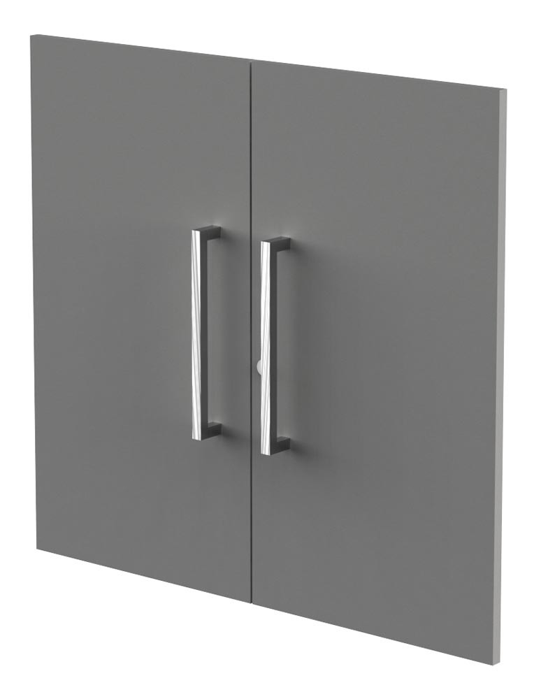 Flügeltüren-Vorbausatz, BxH 760x700 mm, 2 OH, Edelstahlgriffe, Schloss, graphit