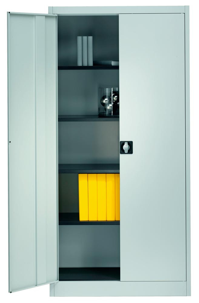 Flügeltürenschrank, BxTxH 950x420x1950 mm, 4 lack. Böden, 65 kg Traglast/Boden, RAL 7035 lichtgrau EP525355