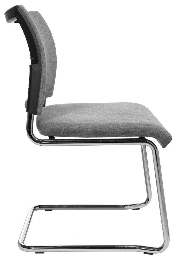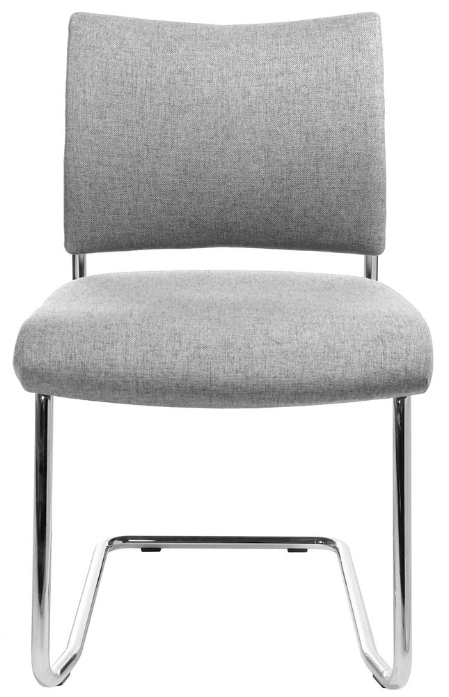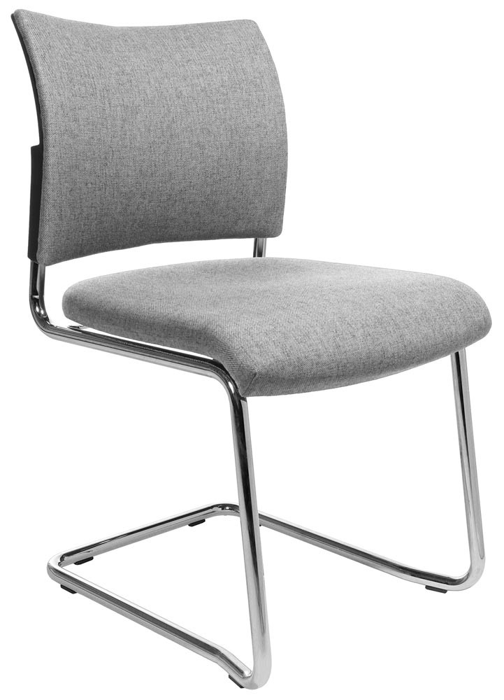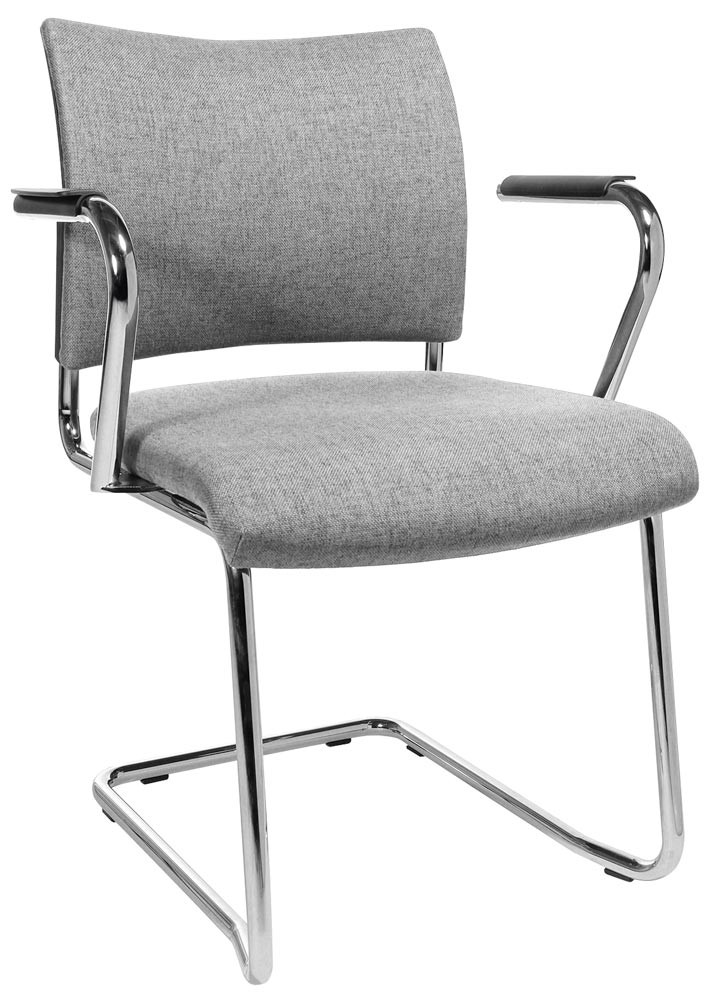 · Ergonomisch geformte und gepolsterte Rückenlehne, Rückseite mit kaschiertem Stoff · Bequem gepolsteter Muldensitz mit abgerundeter Vorderkante · Verchromtes Schwingergestell aus Rundrohr Ø 22 mm · Kunststoff-Fußgleiter · Stapelbar bis zu 2 Stühlen · Armlehnen optional gegen Aufpreis lieferbar · VE 2 Stück