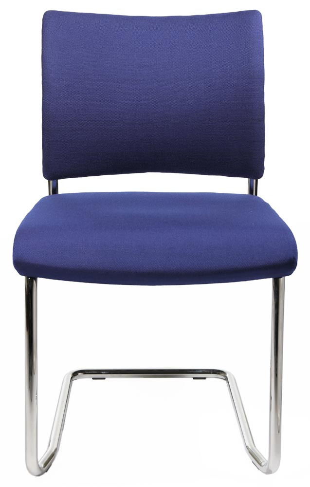 · Ergonomisch geformte und gepolsterte Rückenlehne, Rückseite mit kaschiertem Stoff · Bequem gepolsteter Muldensitz mit abgerundeter Vorderkante · Verchromtes Schwingergestell aus Rundrohr Ø 22 mm · Kunststoff-Fußgleiter · Stapelbar bis zu 2 Stühlen · Armlehnen optional gegen Aufpreis lieferbar · VE 2 Stück