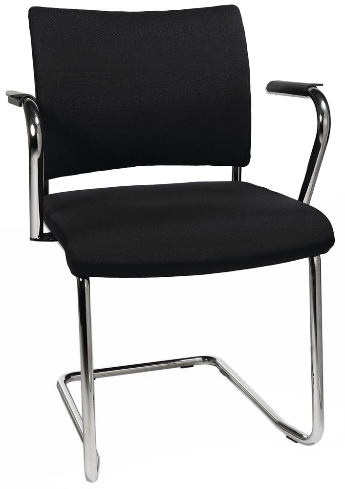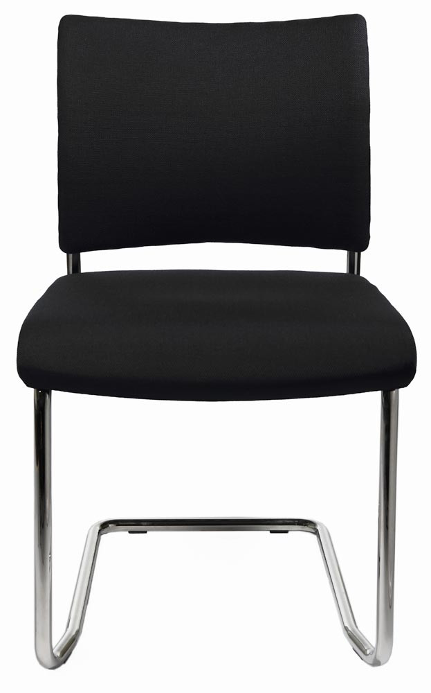 · Ergonomisch geformte und gepolsterte Rückenlehne, Rückseite mit kaschiertem Stoff · Bequem gepolsteter Muldensitz mit abgerundeter Vorderkante · Verchromtes Schwingergestell aus Rundrohr Ø 22 mm · Kunststoff-Fußgleiter · Stapelbar bis zu 2 Stühlen · Armlehnen optional gegen Aufpreis lieferbar · VE 2 Stück