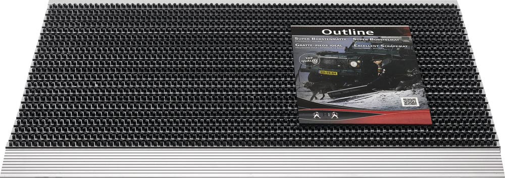 mit einseitiger Aluminium-Anlaufkante in silber oder schwarz · schwarze Reinigungsbürsten aus 100 % PP · Stärke ca. 22 mm · für den Außenbereich