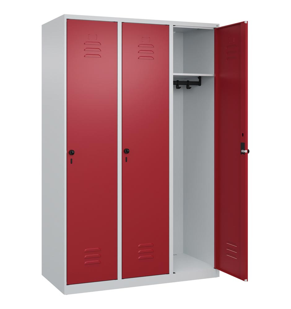 Garderobenschrank, BxTxH 1200x500x1850 mm, 3 Abteile, B 400 mm, Bodenstehend, Drehriegel, Farbwahl