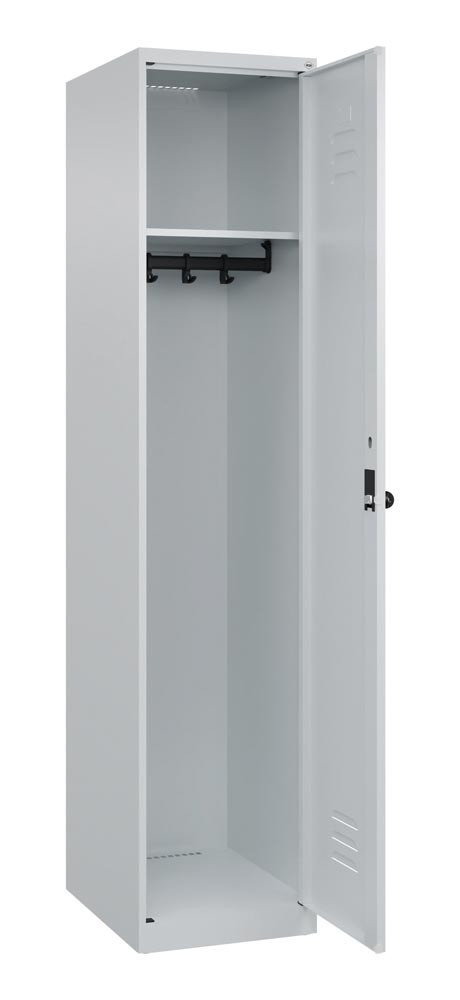 Garderobenschrank, BxTxH 400x500x1850 mm, 1 Abteil, B 400 mm, Bodenstehend, Drehriegel, RAL 7035 EP558535