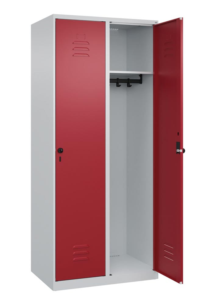 Garderobenschrank, BxTxH 800x500x1850 mm, 2 Abteile, B 400 mm, Bodenstehend, Drehriegel, Farbwahl