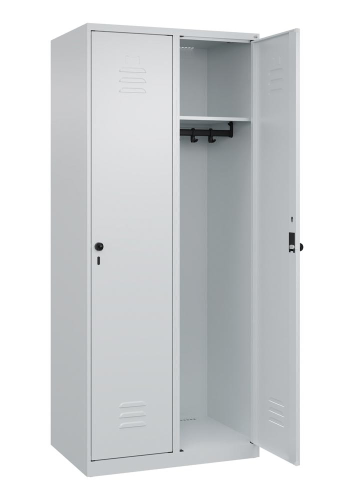 Garderobenschrank, BxTxH 800x500x1850 mm, 2 Abteile, B 400 mm, Bodenstehend, Drehriegel, RAL 7035