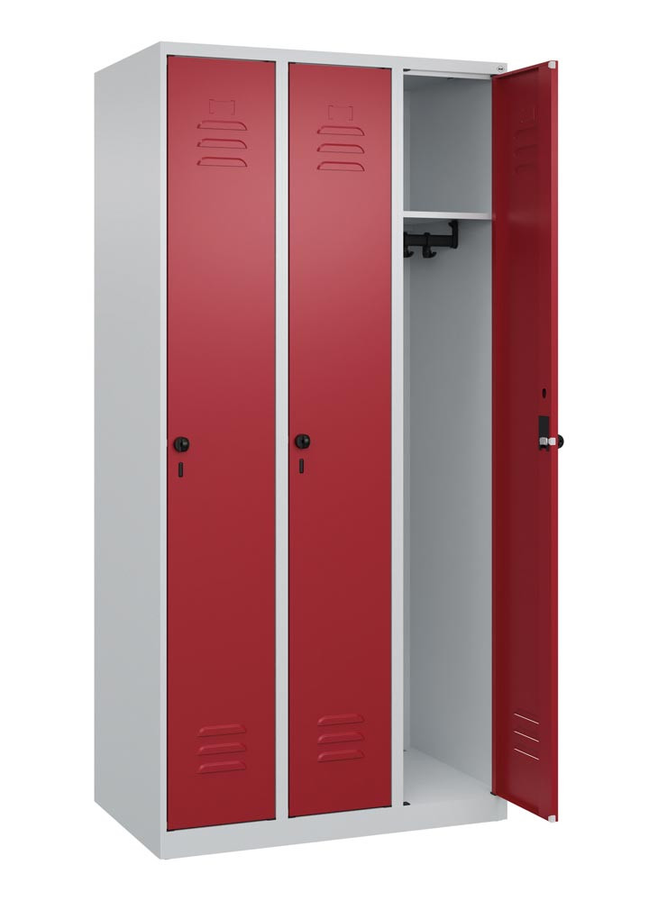 Garderobenschrank, BxTxH 900x500x1850 mm, 3 Abteile, B 300 mm, Bodenstehend, Drehriegel, Farbwahl