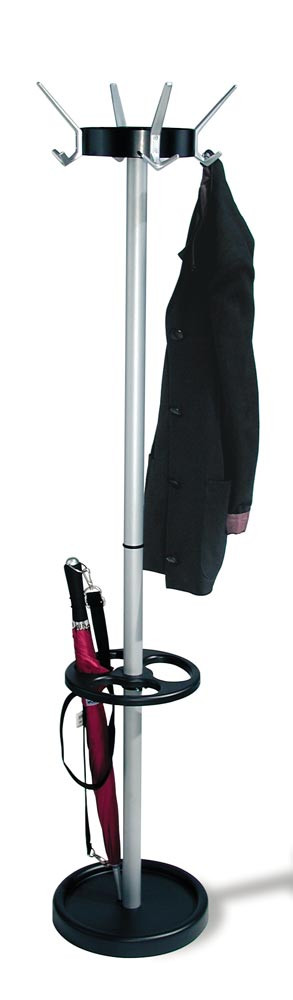 Garderobenständer, Durchm.xH 475x1710 mm, drehbare Hakenkrone, 8 Hut- + 16 Mantelhaken, Schirmständer, alusilber/schwarz EP518877