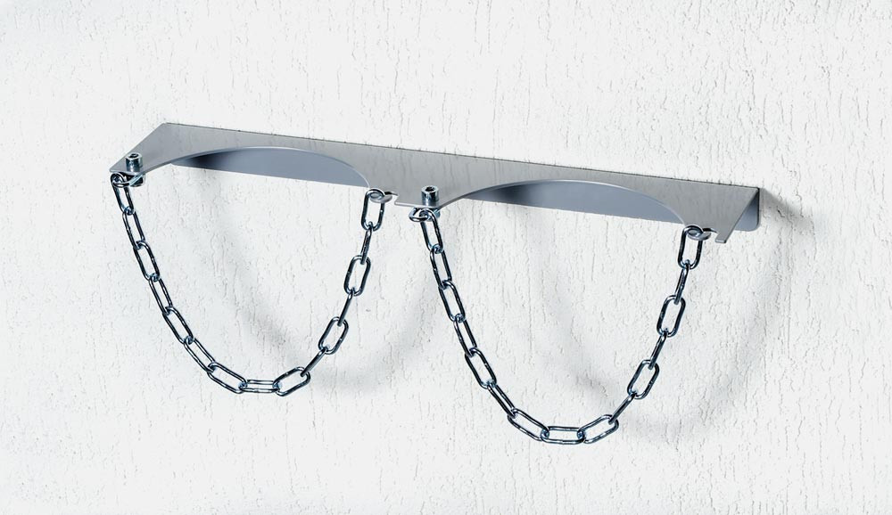 Gasflaschen-Wandhalterung, verzinkt, für 2 Flaschen Durchm. 320 mm, Kettensicherung + Bohrungen zur Wandbefestigung