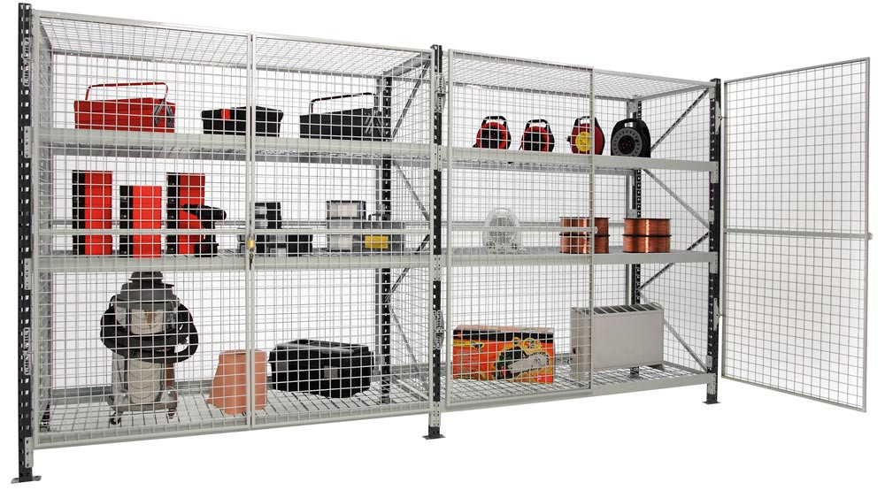 ∙ Schützt und beschränkt den Zugang zum Lagergut ∙ Dach, Rück- und Seitenwände aus Gitterrost ∙ Inkl. verschließbaren Doppelflügeltüren mit Hängeschloss (Hängeschloss im Lieferumfang nicht enthalten) ∙ Maschenweite 50 x 50 mm ∙ Ohne Auffangwanne