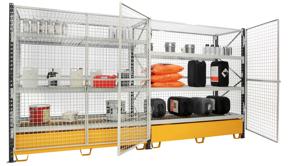 Gefahrstoffregal verschließbar, Anbaufeld, BxTxH 1800x600x2000 mm, 2 Lagerebenen, Rahmen RAL 7024, Traversen RAL 7035 EP533101