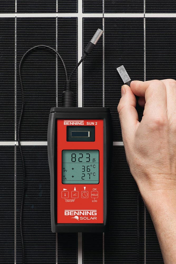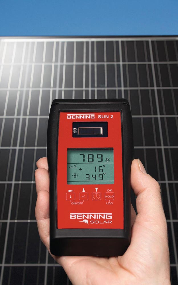 Einstrahlungs- und Temperaturmessgerät BENNING SUN 2 mit integriertem Digitalkompass zur Dachausrichtungs- und Neigungsmessung