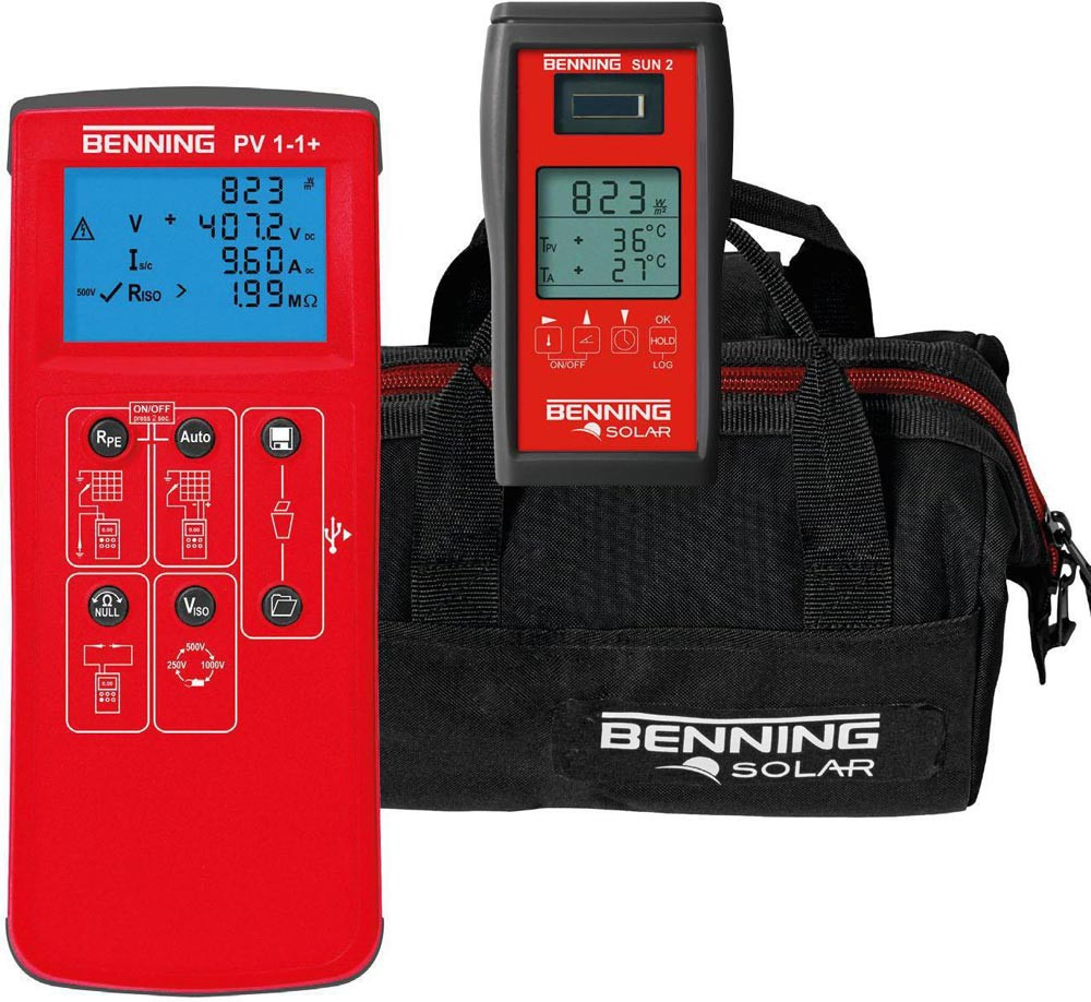 BENNING SUN 2: inkl. Tasche, Gummischutzrahmen, Modul- und Umgebungstemperatursensor, 2 x 1.5 V Mignon AA LR6 Batterien, USB-Kabel, Downloadsoftware