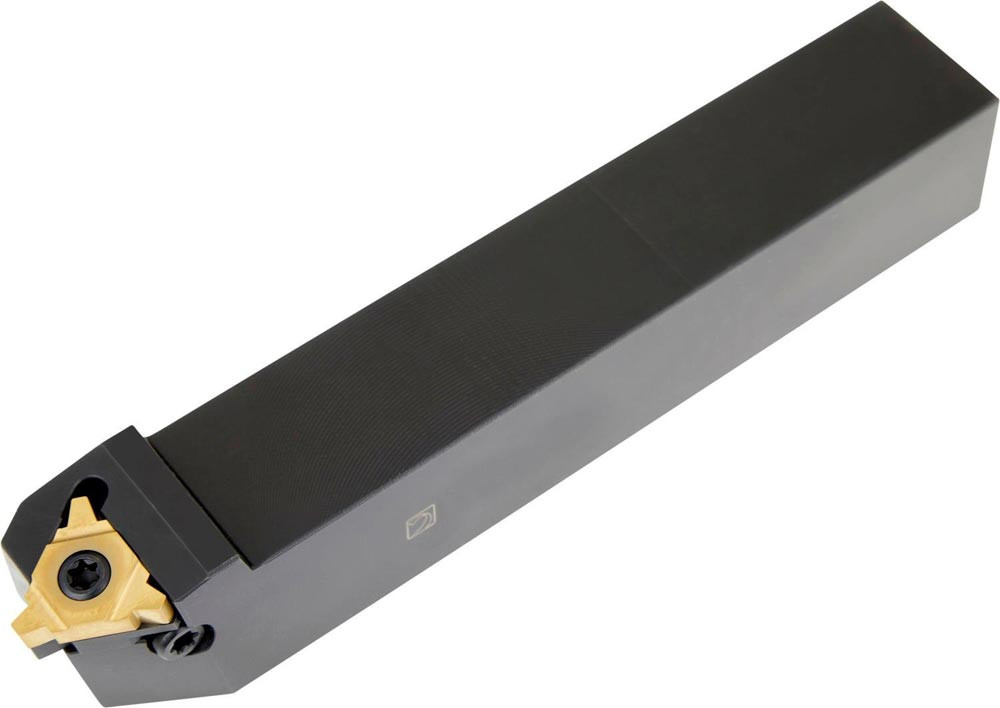 Schraubgeklemmte Gewindedrehhalter mit 1.5° Helixwinkel zum spannen einer dreieckigen Wendeschneidplatte mit einem Innenkreisdurchmesser von 12.7mm (Bezeichnung TN 22EN.. ) · rechte Sonderausführung mit Zylinderschaft · 32mm Werkzeughöhe 25mm Breite und 170mm Gesamtlänge zum Außengewinden