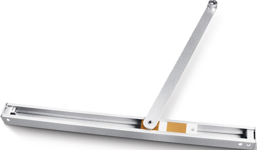 mit integrierter Öffnungsbegrenzung passend für Obentürschließer TS3000V / TS5000 / TS5000L · für rechts und links angeschlagene Türen ohne Umstellung verwendbar · Standardmontage auf Bandgegenseite · bei identischem Anschlagmaß Nachrüstung durch Austausch der Gleitschiene und des Hebels bei eingesetzten Türen problemlos möglich