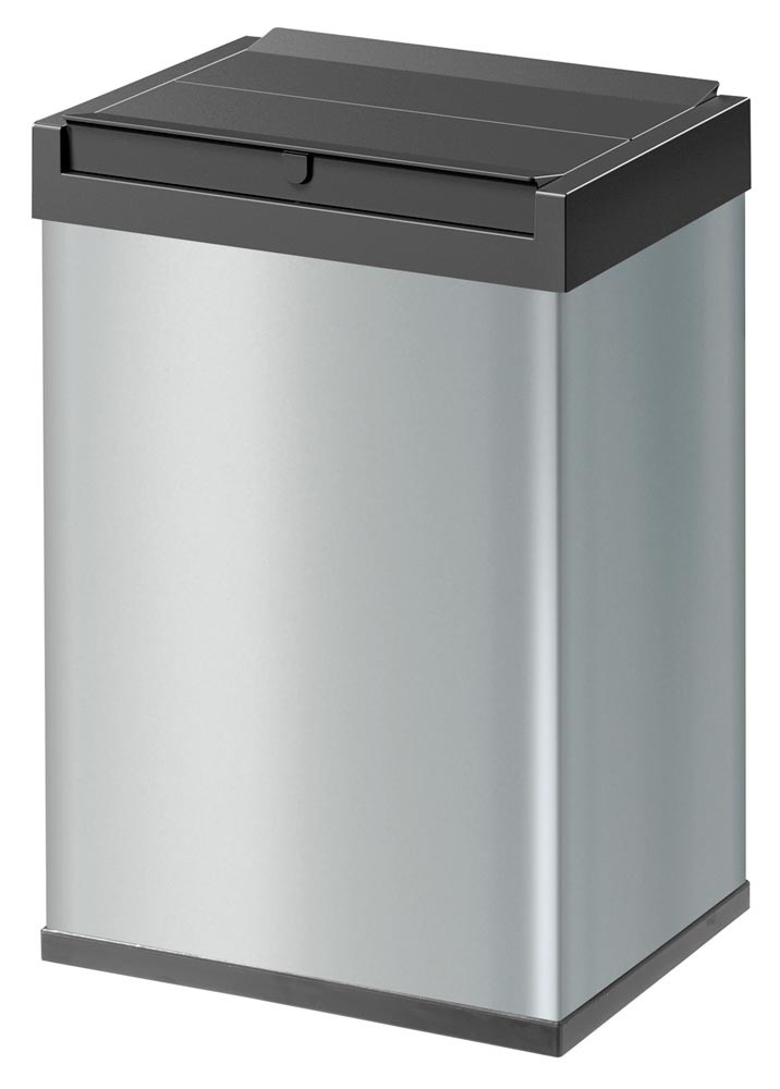 Großraum-Abfallbox, Volumen 35 l, BxTxH 340x260x500 mm, Gehäuse Edelstahl, Kunststoff-Schwingdeckel schwarz EP552605