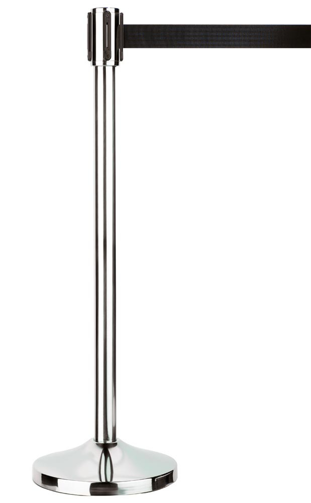 Gurtständer, Ausf. Chrom mit schwarzem Gurt, Höhe 1 m, Fußdurchm. 0,32 m, Gurtlänge max. 3 m, Gewicht 12,5 kg EP527241
