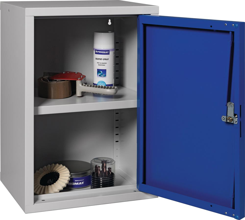 Hängeschrank H600xB400xT300 mm Vollblech, 1 Boden lichtgrau/enzianblau Stahlblech E6045662