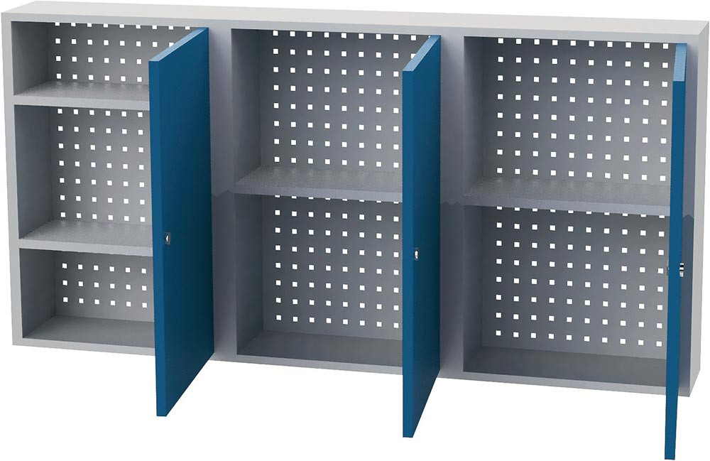 Hängeschrank H750xB1500xT200 mm Vollblechtüren lichtgrau/signalblau Stahlblech