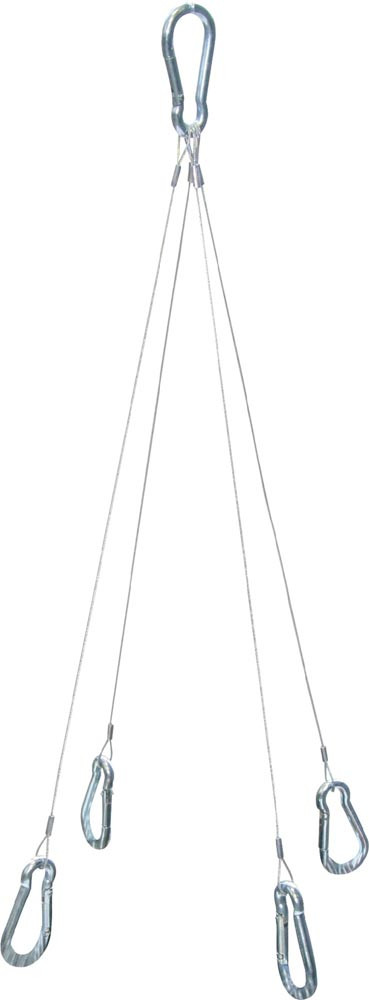 stabile Vierpunktaufhängung · inkl. Drahtseilkombinationen zum Abhängen (Länge ca. 30 cm inkl.Haken) · Aufhängegriff an der Unterseite · Abmessungen: 140 x 140 x 230 mm · Material: schlag- und stoßfestes Polyamid · IP44 · Absicherung: ungesichert