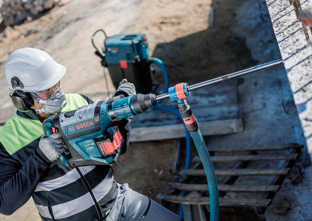 Bohren in Stahlbeton mit verbesserter Staubreduzierung! Durchdringt Stahlbeton mit einem Voll-Carbide-Kopf mit 4 Schneidern Das Bohren präziser Löcher in Beton ist nur ein Schritt bei der Installation chemischer Dübel. Der nächste Schritt besteht in zeitraubenden Reinigungsarbeiten. Mit dem EXPERT SDS Clean plus-8X wird alles anders. Das System bohrt Löcher und entfernt gleichzeitig Staub. Das beschleunigt und vereinfacht die Installation chemischer Dübel. Wir haben das EXPERT SDS Clean plus-8X Set für Bauarbeiter und Installateure entwickelt · die Löcher für chemische Dübel bohren müssen. Der Bohrer ist mit einem 4-Schneider-Vollhartmetallkopf und einem robusten Staubsaugerrohr ausgestattet. Zudem haben wir den SDS Clean plus Anschluss verbaut · der für alle SDS Clean plus-8X Bohrer geeignet ist und sich leicht montieren und abnehmen lässt. Du erhältst also einen leistungsstarken Bohrer · der bei Verstopfung leicht zu reinigen ist (einfach das Absaugrohr vom Bohrer abnehmen) sowie eine neue Technologie zur Staubreduzierung · mit der du Löcher für chemische Dübel schneller vorbereiten kannst. Zudem ist die Luft am Arbeitsplatz sauberer. Alles mit nur einem Zubehör. Hocheffizienter Abtransport von Staub mit Bosch Particle Control